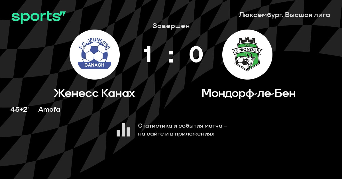 Результат прошлой игры в турнире «Высшая лига»: Женесс Канах – Женесс Эш 1:0. После 6 туров Женесс Канах набирает 6 очков и занимает 11 место в турнире. Лучший бомбардир команды – Морис Девилль: он забил 3 в 5 матчах. В 6 последних матчах в турнире «Высшая лига» Женесс Канах обязательно забивает. В последних 5 играх Женесс Канах забивает 7 голов. В последних 5 играх Женесс Канах пропускает 8 голов.