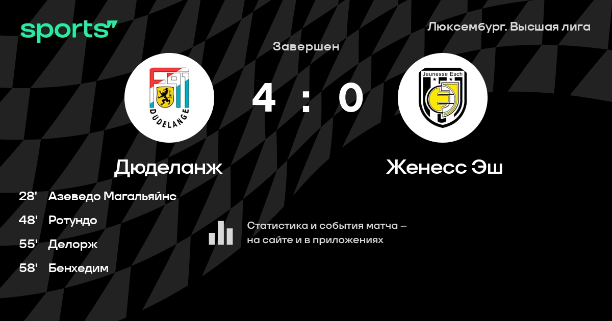 Дюделанж – Женесс Эш: Дюделанж забивает в 8 из 10 последних матчей против этого соперника