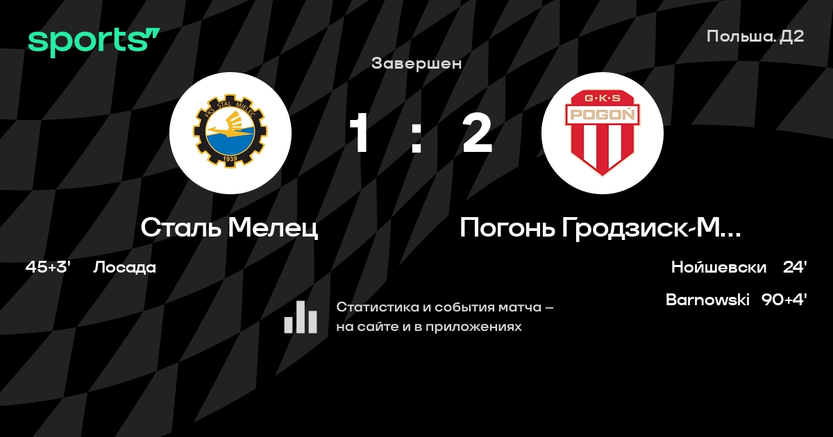 В последних 5 играх Погонь Гродзиск-Мазовецкий забивает в среднем 1.80 гола за игру