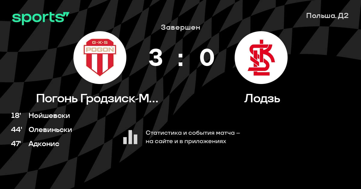 Погонь Гродзиск-Мазовецкий – Лодзь: Лодзь не проигрывает в 5 последних матчах против этого соперника