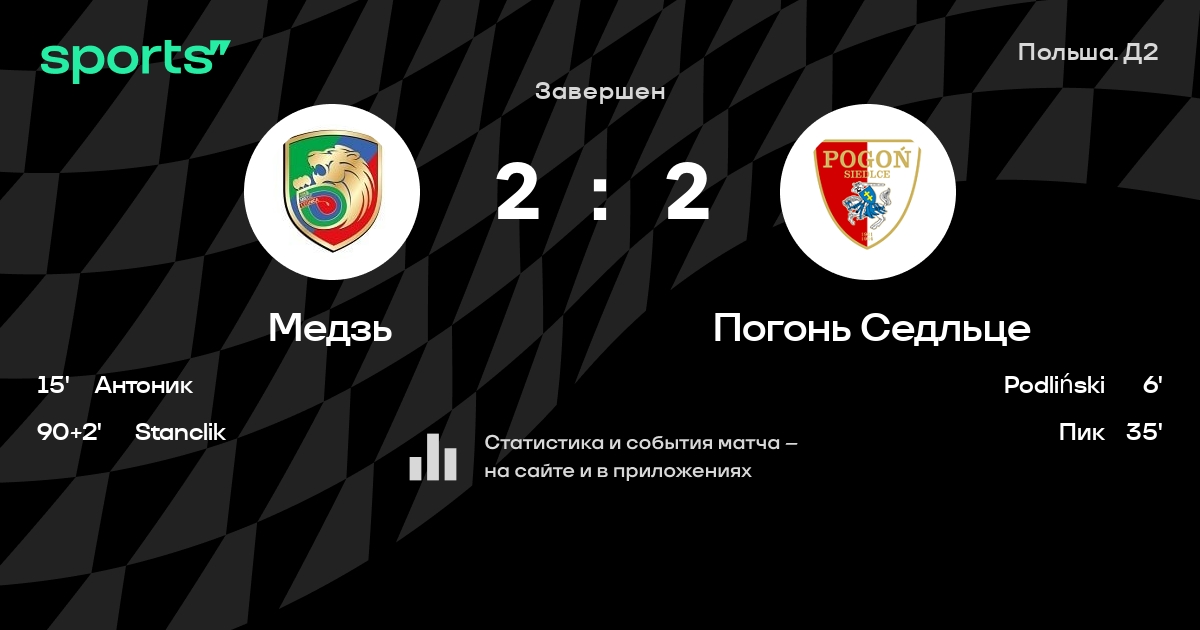 Медзь – Погонь Седльце: Медзь не проигрывает в 8 из 10 последних матчей против этого соперника