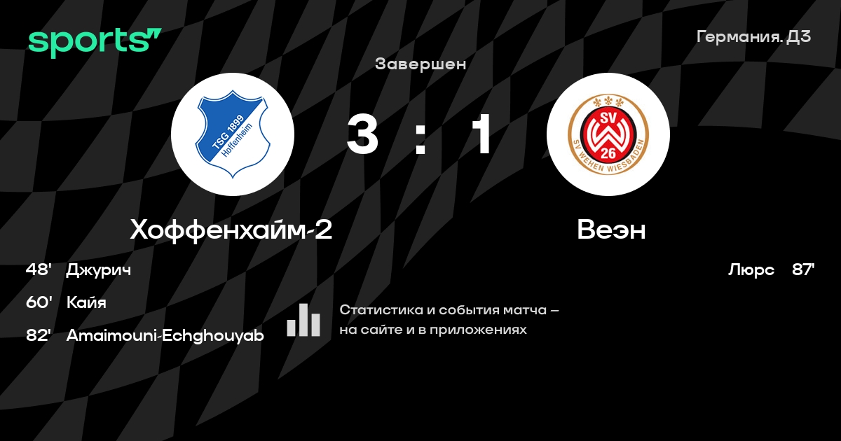 Хоффенхайм-2 побеждает в 3 последних матчах дома