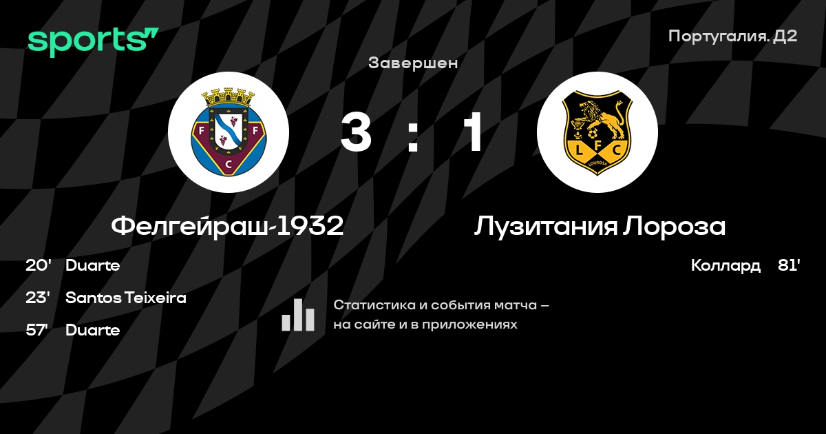 Результат прошлой игры в турнире «Сегунда»: Шавеш – Фелгейраш-1932 1:1. После 3 туров Фелгейраш-1932 набирает 1 очков и занимает 17 место в турнире. Лучший бомбардир команды – Vasco Moreira: он забил 1 в 3 матчах. Фелгейраш-1932 не может выиграть в 3 последних матчах в рамках турнира «Сегунда». Фелгейраш-1932 пропускает в 7 последних матчах в турнире «Сегунда». В последних 5 играх Фелгейраш-1932 забивает 2 голов. В последних 5 играх Фелгейраш-1932 пропускает 7 голов.