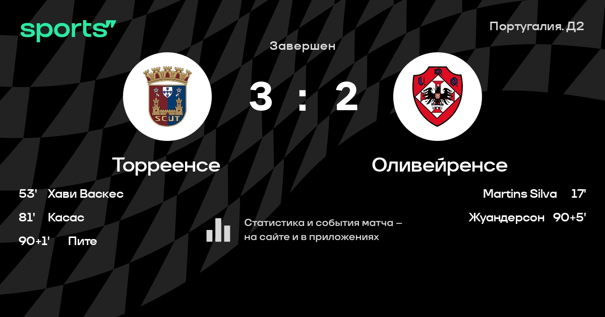 Результат прошлой игры в турнире «Сегунда»: Порту Б – Торреенсе 2:3. После 7 туров Торреенсе набирает 11 очков и занимает 7 место в турнире. Лучший бомбардир команды – Стопира: он забил 2 в 7 матчах. Торреенсе не проигрывает в 3 последних матчах в рамках турнира «Сегунда». В последних 5 играх Торреенсе забивает 10 голов. В последних 5 играх Торреенсе пропускает 7 голов.
