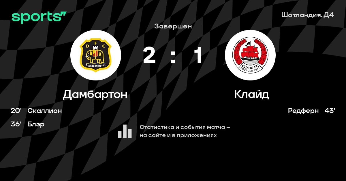 Дамбартон – Клайд: Дамбартон не проигрывает в 8 из 10 последних матчей против этого соперника