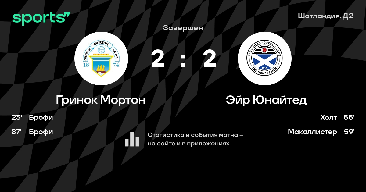 Гринок Мортон – Эйр Юнайтед: Эйр Юнайтед забивает в 5 из 7 последних матчей против этого соперника