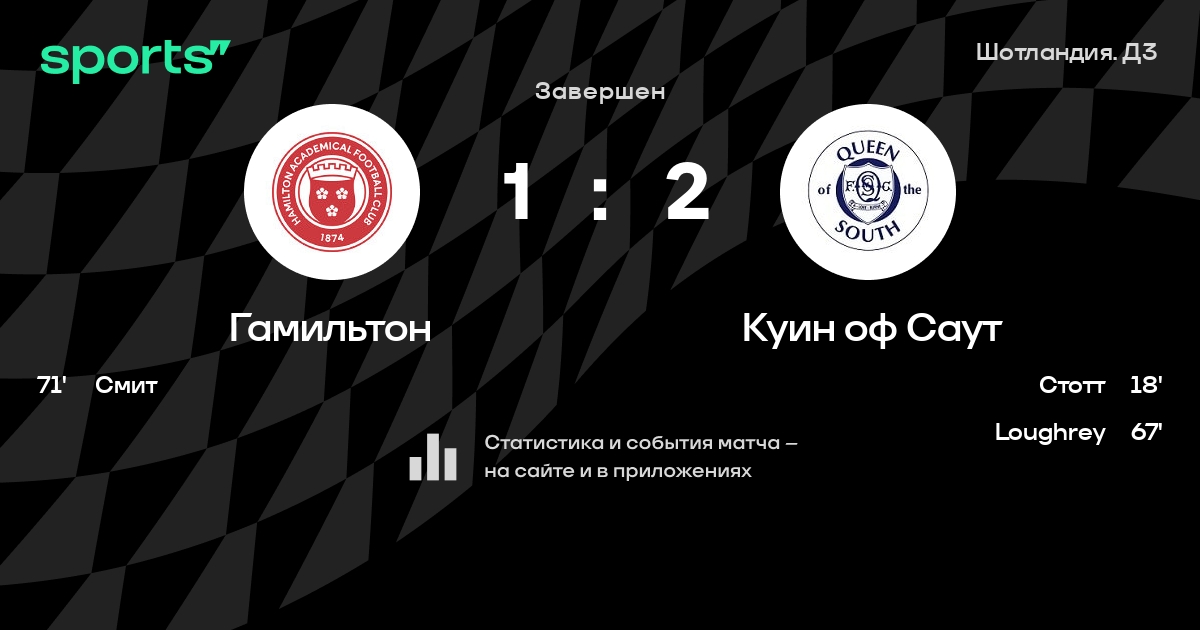 Гамильтон – Куин оф Саут: Гамильтон не проигрывает в 6 последних матчах против этого соперника