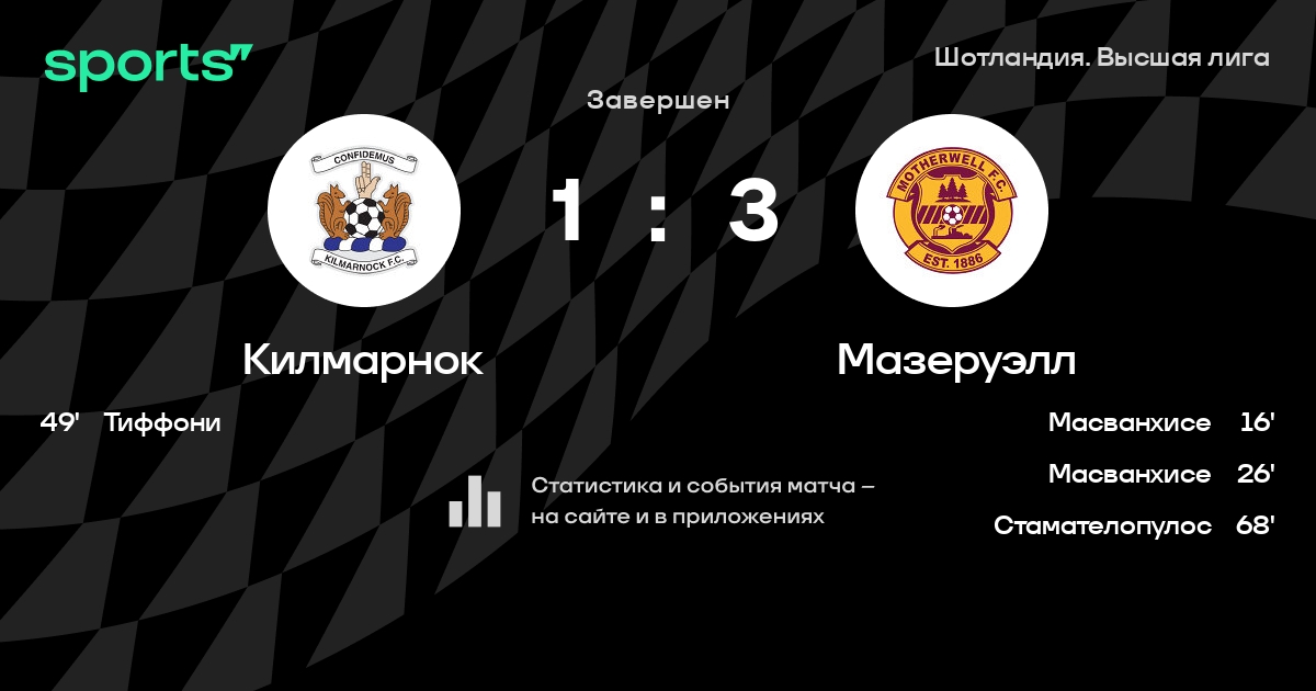 Килмарнок – Мазеруэлл: Мазеруэлл не проигрывает в 6 из 8 последних матчей против этого соперника