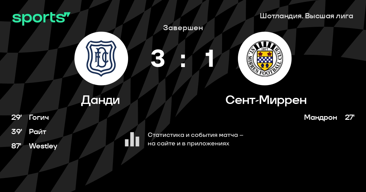 Данди – Сент-Миррен: Сент-Миррен забивает в 5 из 7 последних матчей против этого соперника
