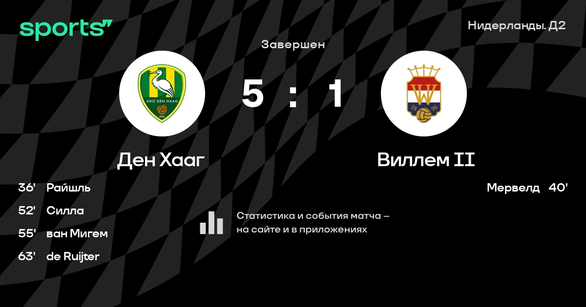Ден Хааг – Виллем II: Виллем II не проигрывает в 7 последних матчах против этого соперника