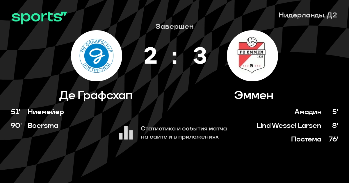 Де Графсхап – Эммен: Де Графсхап не проигрывает в 9 из 11 последних матчей против этого соперника дома