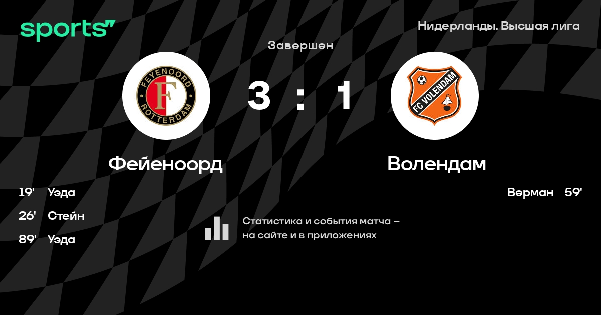 Результат прошлой игры в турнире «Эредивизи Нидерланды»: Фейеноорд – ПСВ 2:3. После 10 туров Фейеноорд набирает 25 очков и занимает 2 место в турнире. Лучший бомбардир команды – Аясе Уэда: он забил 11 в 12 матчах. В 10 последних матчах в турнире «Эредивизи Нидерланды» Фейеноорд обязательно забивает. В последних 5 играх Фейеноорд забивает 15 голов. В последних 5 играх Фейеноорд пропускает 8 голов.