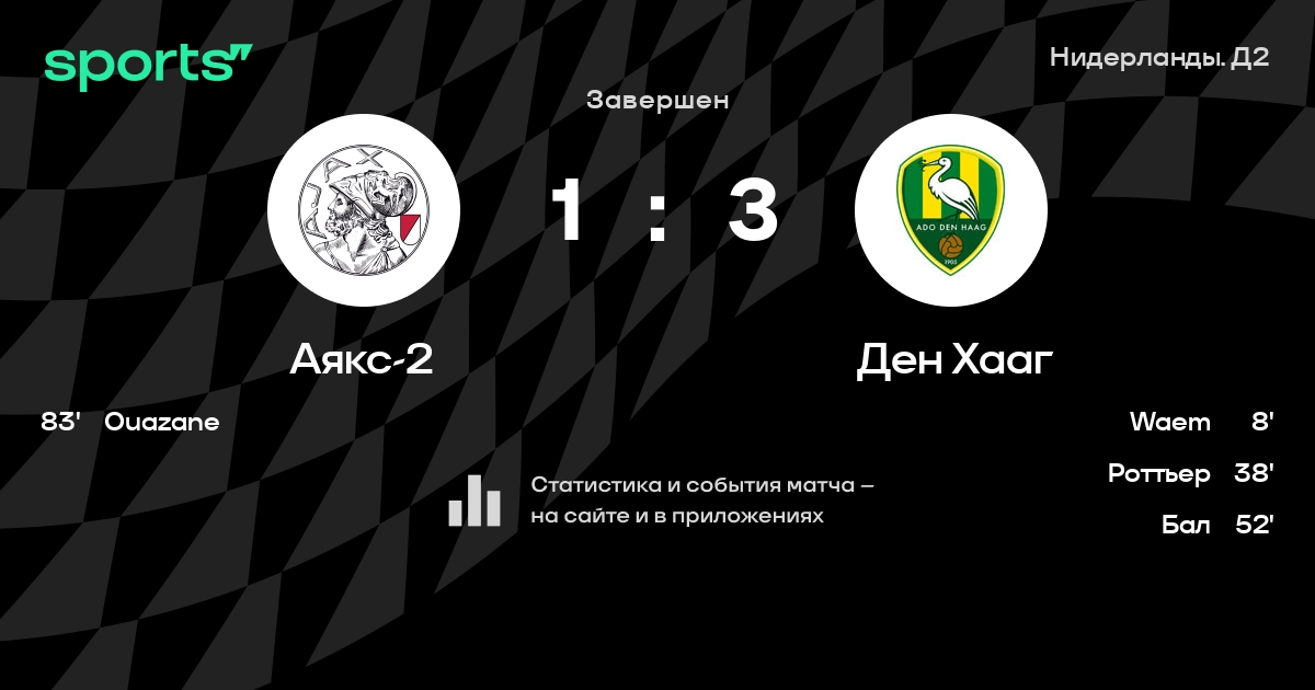Аякс-2 – Ден Хааг: Ден Хааг не проигрывает в 5 из 7 последних матчей против этого соперника