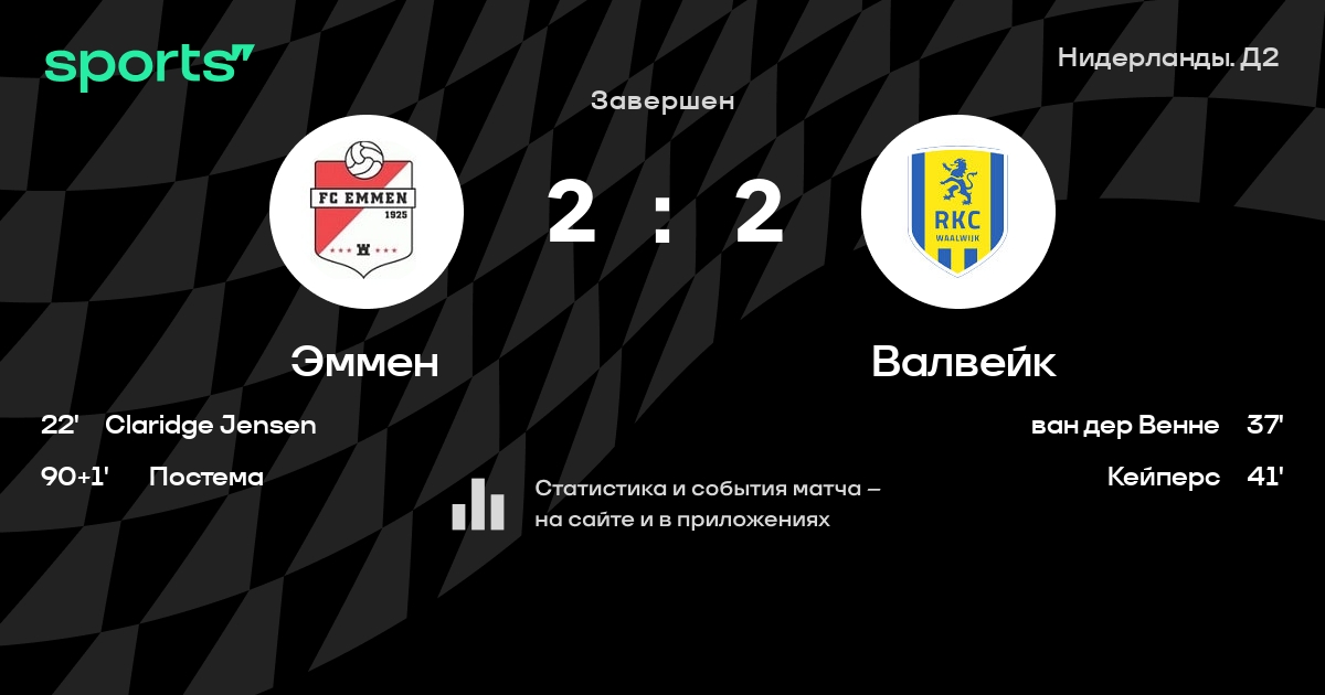Результат прошлой игры в турнире «Первый дивизион»: Валвейк – Камбюр 4:2. После 13 туров Валвейк набирает 21 очков и занимает 5 место в турнире. Лучший бомбардир команды – Йеспер Унекен: он забил 5 в 12 матчах. В 8 последних матчах в турнире «Первый дивизион» Валвейк обязательно забивает. Валвейк пропускает в 9 последних матчах в турнире «Первый дивизион». В последних 5 играх Валвейк забивает 13 голов. В последних 5 играх Валвейк пропускает 10 голов.