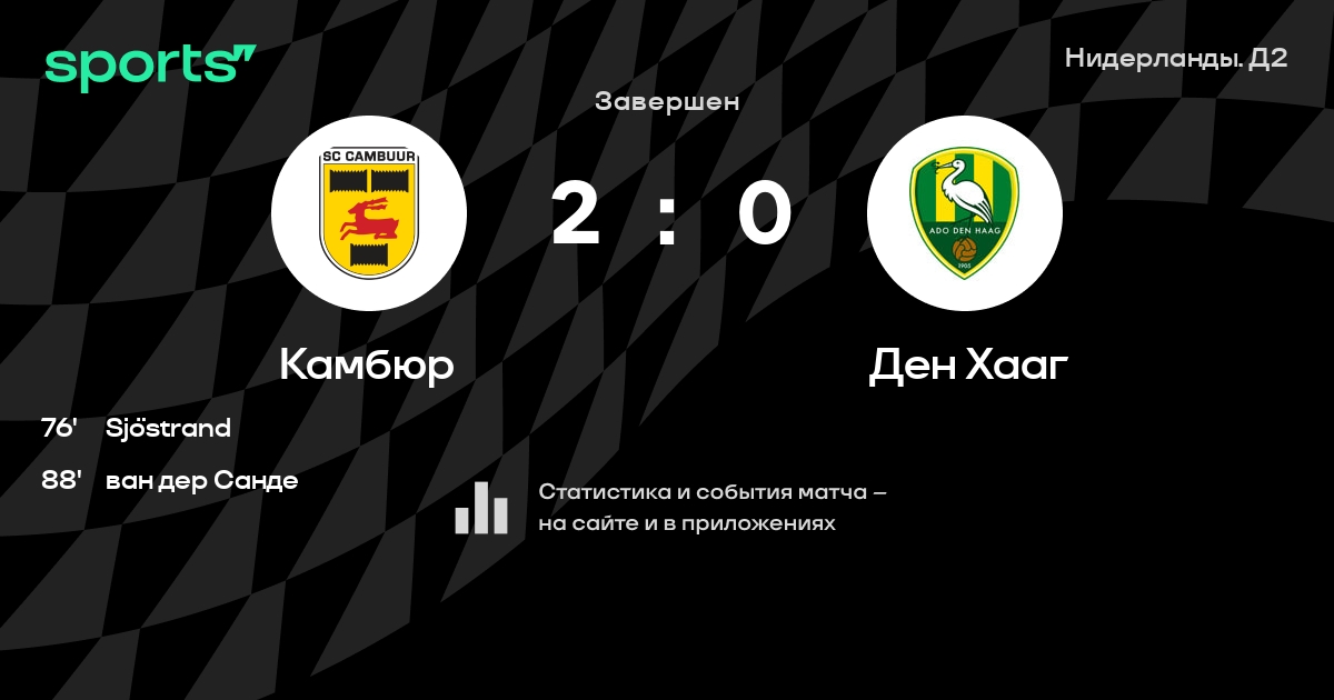 Результат прошлой игры в турнире «Первый дивизион»: Эйндховен – Камбюр 3:3. После 16 туров Камбюр набирает 34 очков и занимает 2 место в турнире. Лучший бомбардир команды – Марк Димерс: он забил 6 в 19 матчах. Камбюр не проигрывает в 3 последних матчах в рамках турнира «Первый дивизион». Ден Хааг имеет в активе больше всех побед в турнире – 13. В 15 последних матчах в турнире «Первый дивизион» Камбюр обязательно забивает. В последних 5 играх Камбюр забивает 15 голов. В последних 5 играх Камбюр пропускает 11 голов.