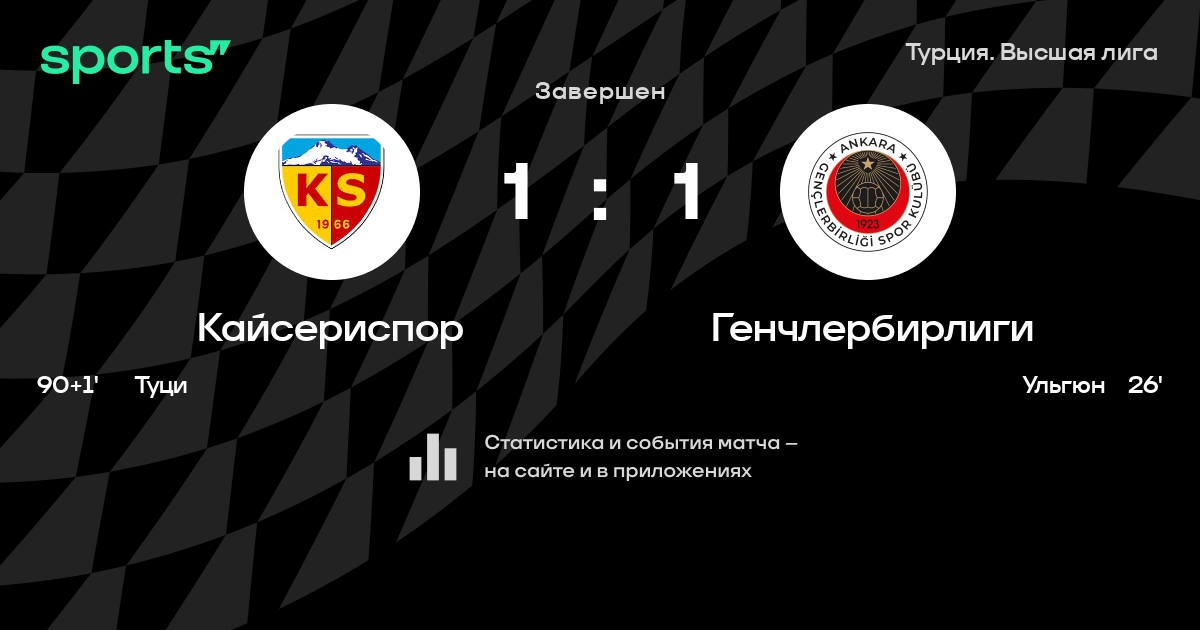 Кайсериспор – Генчлербирлиги: коэффициенты