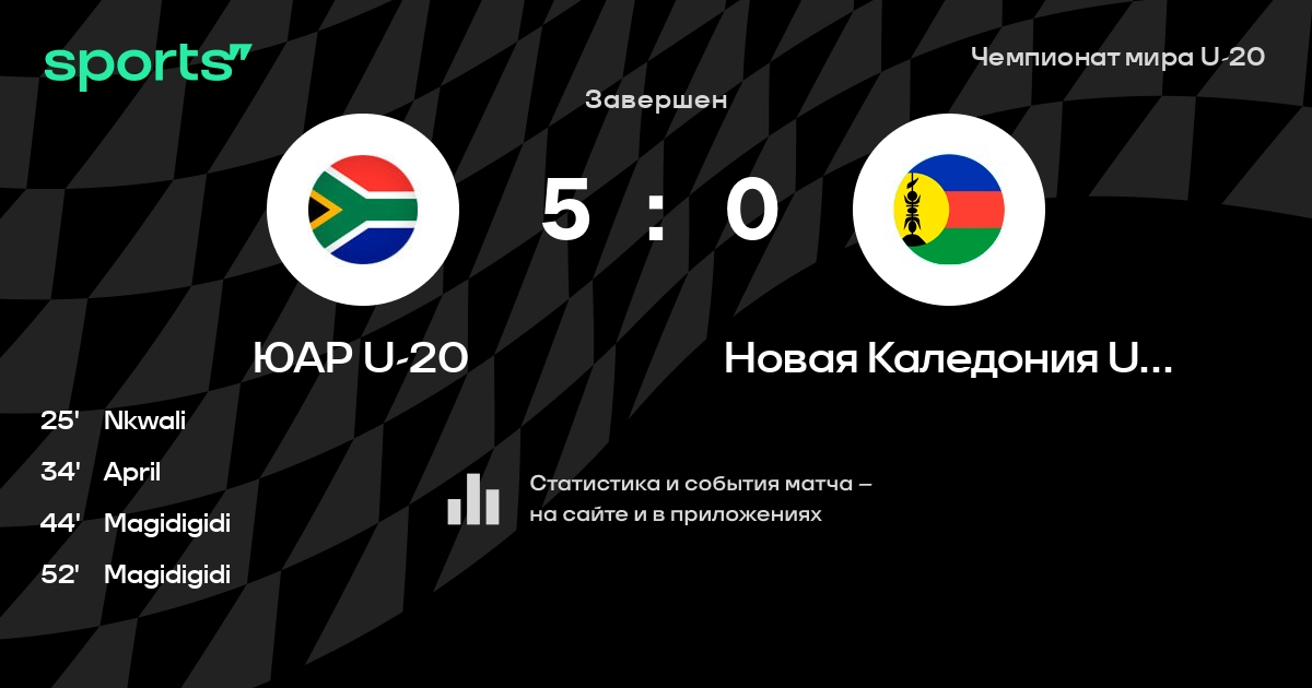 ЮАР U-20 – Новая Каледония U-20: коэффициенты