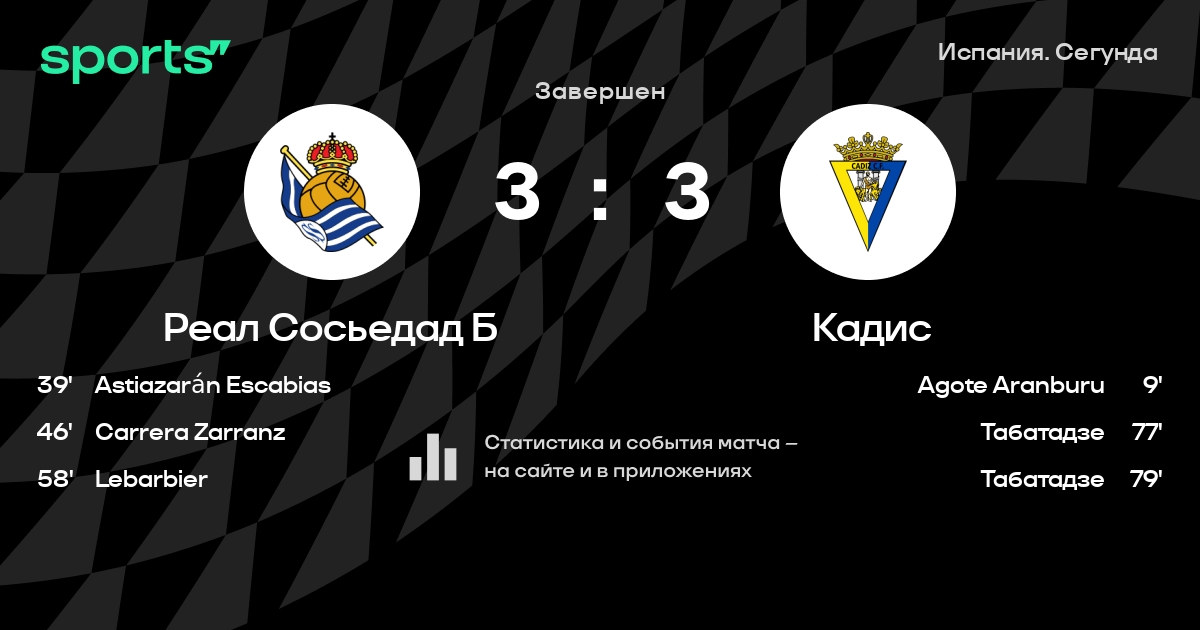 Фрага - Unax Agote Aranburu, Rodriguez Larrañaga, Бейтиа, Дадье - Mikel Rodríguez Ulacia, Alex Douma Johan Lebarbier, Марчаль, Gorka Gorosabel Añorga, Lander Astiazarán Escabias - Gorka Carrera ZarranzЗапасные: Арана, Фольгадо, Бальда Субири, Kita, Astigarraga Alkorta, Garro Larrarte, Eceizabarrena Rezola, Aguirre Basurco, Диас, Orobengoa Arbelaiz, Osazuwa Omoruyi, Ramírez Ramírez