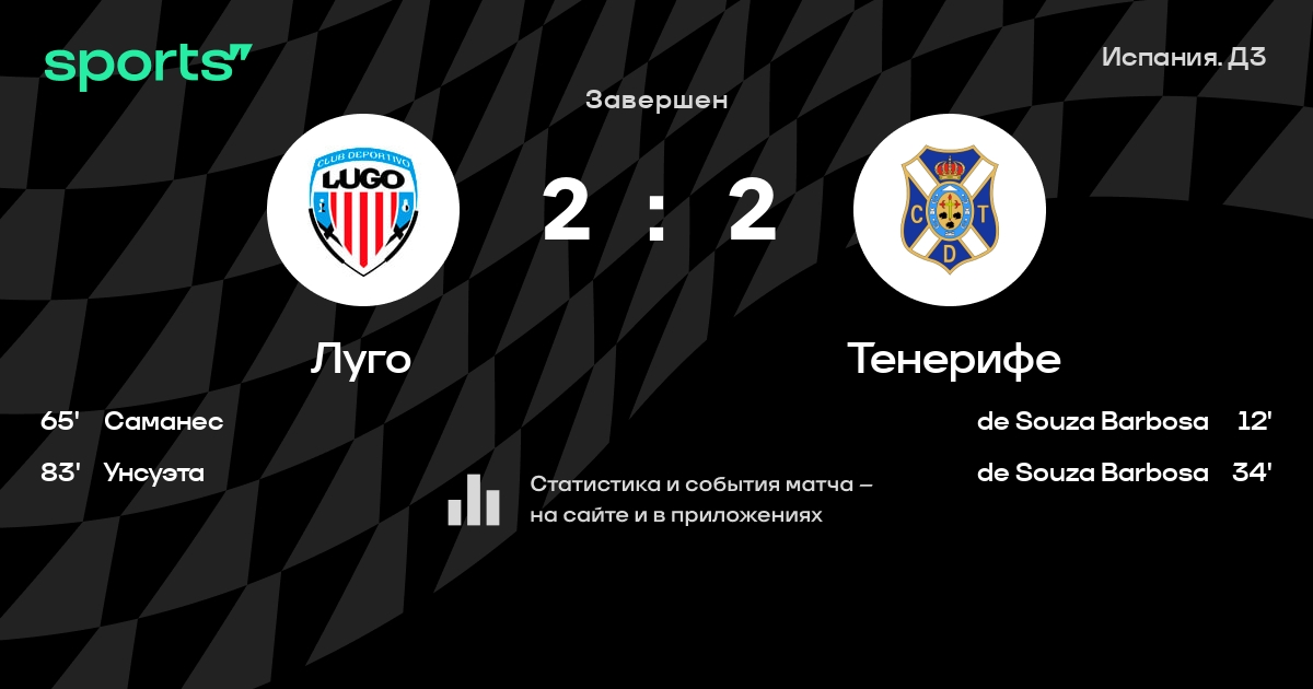 Результат прошлой игры в турнире «Первый дивизион RFEF»: Атлетик Б – Луго 2:0. После 14 туров Луго набирает 18 очков и занимает 13 место в турнире. Лучший бомбардир команды – Николас Реньеро: он забил 3 в 10 матчах. Тенерифе имеет в активе больше всех побед в турнире – 10. В последних 5 играх Луго забивает 5 голов. В последних 5 играх Луго пропускает 6 голов.