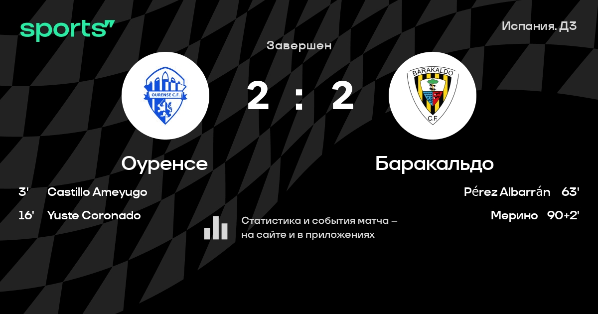 Результат прошлой игры в турнире «Первый дивизион RFEF»: Мерида АД – Оуренсе 3:2. После 15 туров Оуренсе набирает 18 очков и занимает 14 место в турнире. Лучший бомбардир команды – Уго Санс: он забил 3 в 3 матчах. В 4 последних матчах в турнире «Первый дивизион RFEF» Оуренсе обязательно забивает. В последних 5 играх Оуренсе забивает 13 голов. В последних 5 играх Оуренсе пропускает 7 голов.