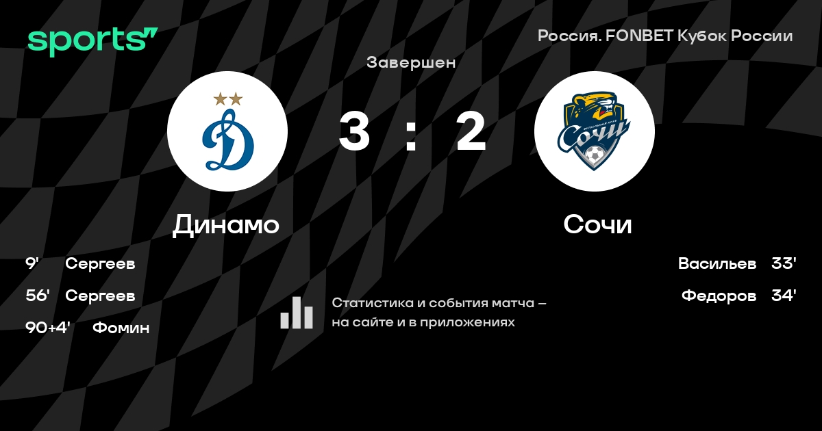 Динамо – Сочи: Сочи забивает в 6 последних матчах против этого соперника