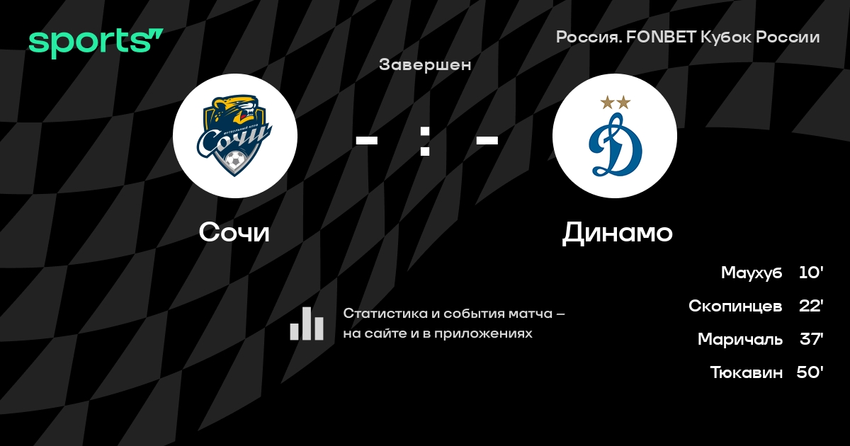 Кубок России: шансы «Сочи» и московского «Динамо» на победу в матче 4 тура Пути РПЛ
