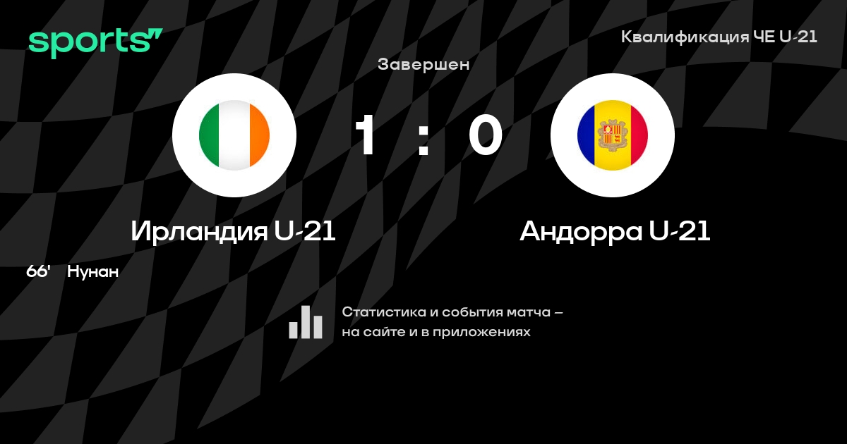 | 3 | Ирландия U-21 | 3 | 2 | 1 | 0 | 5 | 3 | +2 | 7 | ||