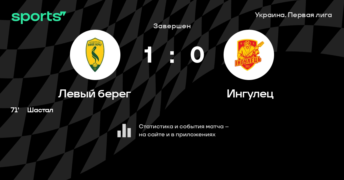 Результат прошлой игры в турнире «Первая лига»: Металлург Запорожье – Левый берег 0:5. После 13 туров Левый берег набирает 26 очков и занимает 5 место в турнире. Лучший бомбардир команды – Сидней: он забил 5 в 12 матчах. Левый берег не проигрывает в 7 последних матчах в рамках турнира «Первая лига». В 5 последних матчах в турнире «Первая лига» Левый берег обязательно забивает. В последних 5 играх Левый берег забивает 11 голов. В последних 5 играх Левый берег пропускает 1 голов.