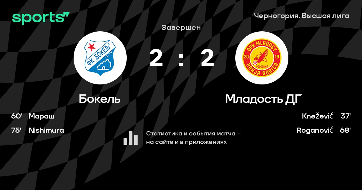 Бокель – Младость ДГ: Младость ДГ не проигрывает в 8 из 9 последних матчей против этого соперника