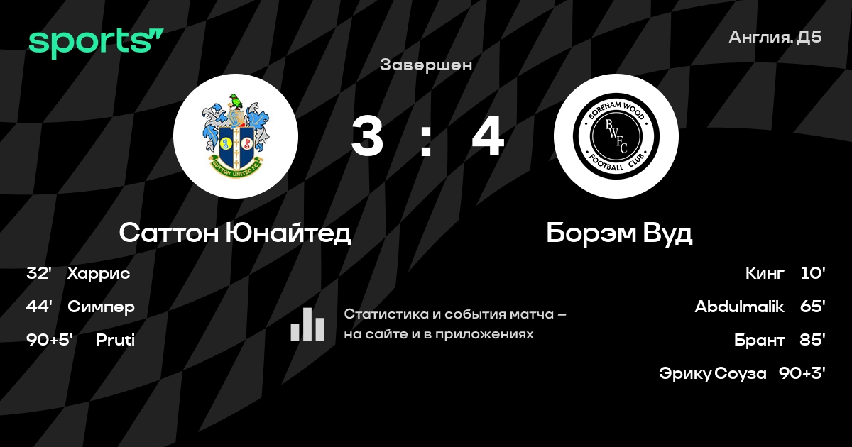 Трансляция Саттон Юнайтед - Борэм Вуд