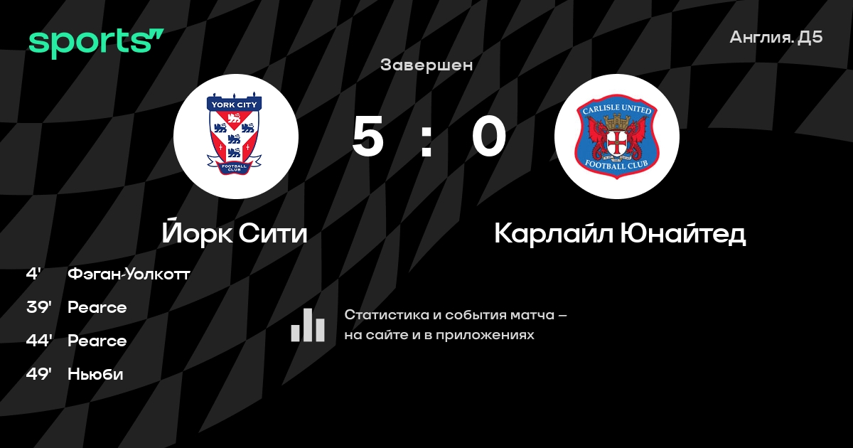 Результат прошлой игры в турнире «Д5. Национальная лига»: Йорк Сити – Солихалл Мурс 0:1. После 8 туров Йорк Сити набирает 15 очков и занимает 8 место в турнире. Лучший бомбардир команды – Алекс Хант: он забил 3 в 7 матчах. В последних 5 играх Йорк Сити забивает 11 голов. В последних 5 играх Йорк Сити пропускает 5 голов.