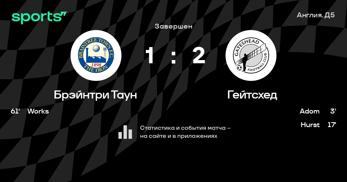 Брэйнтри Таун – Гейтсхед: Брэйнтри Таун забивает в 7 последних матчах против этого соперника