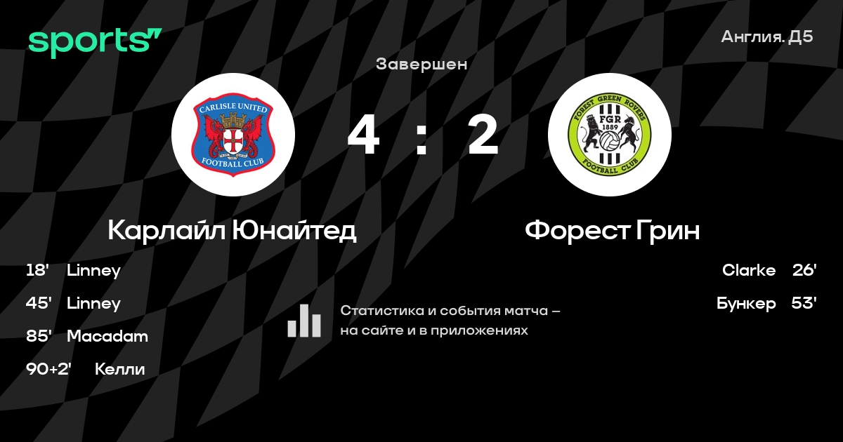 Карлайл Юнайтед – Форест Грин: Форест Грин побеждает в 4 последних очных матчах