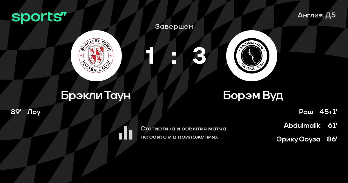 Результат прошлой игры в турнире «Д5. Национальная лига»: Брэйнтри Таун – Брэкли Таун 0:1. После 16 туров Брэкли Таун набирает 20 очков и занимает 13 место в турнире. Лучший бомбардир команды – Мэтт Лоу: он забил 4 в 19 матчах. В последних 5 играх Брэкли Таун забивает 9 голов. В последних 5 играх Брэкли Таун пропускает 6 голов.