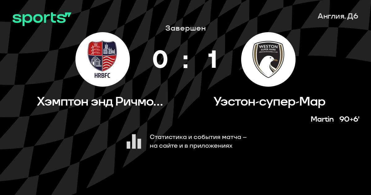Результат прошлой игры в турнире «Д6. Национальная конференция»: Хэмптон энд Ричмонд – Слау Таун 2:3. После 10 туров Хэмптон энд Ричмонд набирает 16 очков и занимает 7 место в турнире. Лучший бомбардир команды – D. Rodari: он забил 4 в 6 матчах. Хэмптон энд Ричмонд не может выиграть в 4 последних матчах в рамках турнира «Д6. Национальная конференция». В 7 последних матчах в турнире «Д6. Национальная конференция» Хэмптон энд Ричмонд обязательно забивает. Хэмптон энд Ричмонд пропускает в 8 последних матчах в турнире «Д6. Национальная конференция». В последних 5 играх Хэмптон энд Ричмонд забивает 10 голов. В последних 5 играх Хэмптон энд Ричмонд пропускает 10 голов.