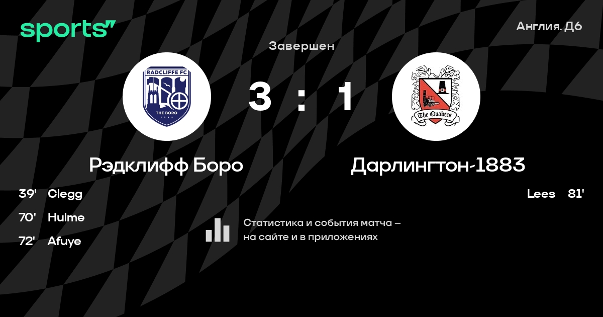 Рэдклифф Боро - Дарлингтон-1883: положение в турнире