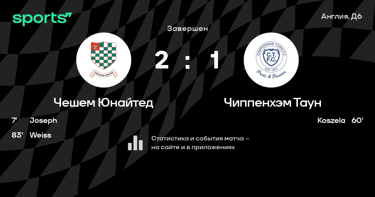 Результат прошлой игры в турнире «Д6. Национальная конференция»: Истборн – Чешем Юнайтед 1:2. После 14 туров Чешем Юнайтед набирает 20 очков и занимает 11 место в турнире. Лучший бомбардир команды – N. Minhas: он забил 3 в 11 матчах. В 3 последних матчах в турнире «Д6. Национальная конференция» Чешем Юнайтед обязательно забивает. В последних 5 играх Чешем Юнайтед забивает 8 голов. В последних 5 играх Чешем Юнайтед пропускает 4 голов.