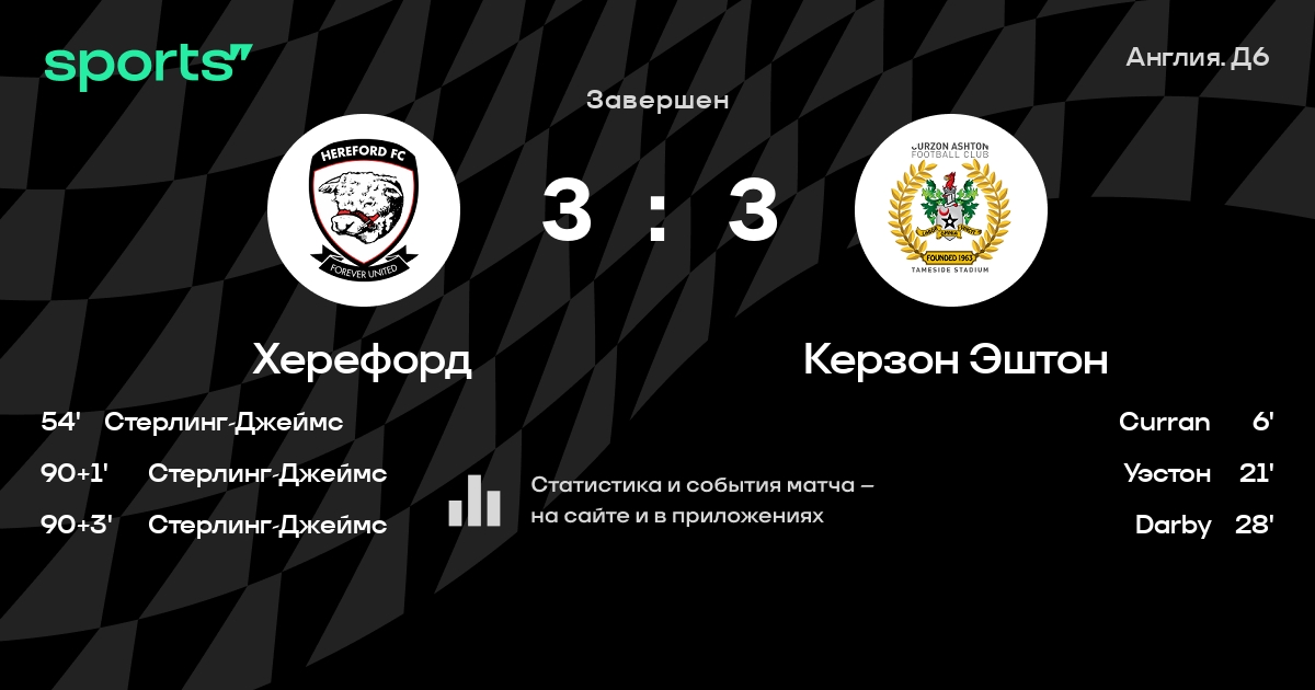 Результат прошлой игры в турнире «Д6. Национальная конференция»: Файлд – Херефорд 2:1. После 13 туров Херефорд набирает 15 очков и занимает 18 место в турнире. Лучший бомбардир команды – Ремай Кэмпбелл: он забил 3 в 10 матчах. Херефорд не может выиграть в 3 последних матчах в рамках турнира «Д6. Национальная конференция». В 8 последних матчах в турнире «Д6. Национальная конференция» Херефорд обязательно забивает. Херефорд пропускает в 7 последних матчах в турнире «Д6. Национальная конференция». В последних 5 играх Херефорд забивает 5 голов. В последних 5 играх Херефорд пропускает 9 голов.