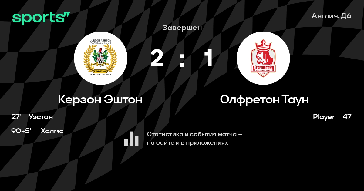 Результат прошлой игры в турнире «Д6. Национальная конференция»: Керзон Эштон – Файлд 1:3. После 20 туров Керзон Эштон набирает 28 очков и занимает 9 место в турнире. Лучший бомбардир команды – A. Curran: он забил 7 в 21 матчах. В 14 последних матчах в турнире «Д6. Национальная конференция» Керзон Эштон обязательно забивает. В последних 5 играх Керзон Эштон забивает 7 голов. В последних 5 играх Керзон Эштон пропускает 8 голов.