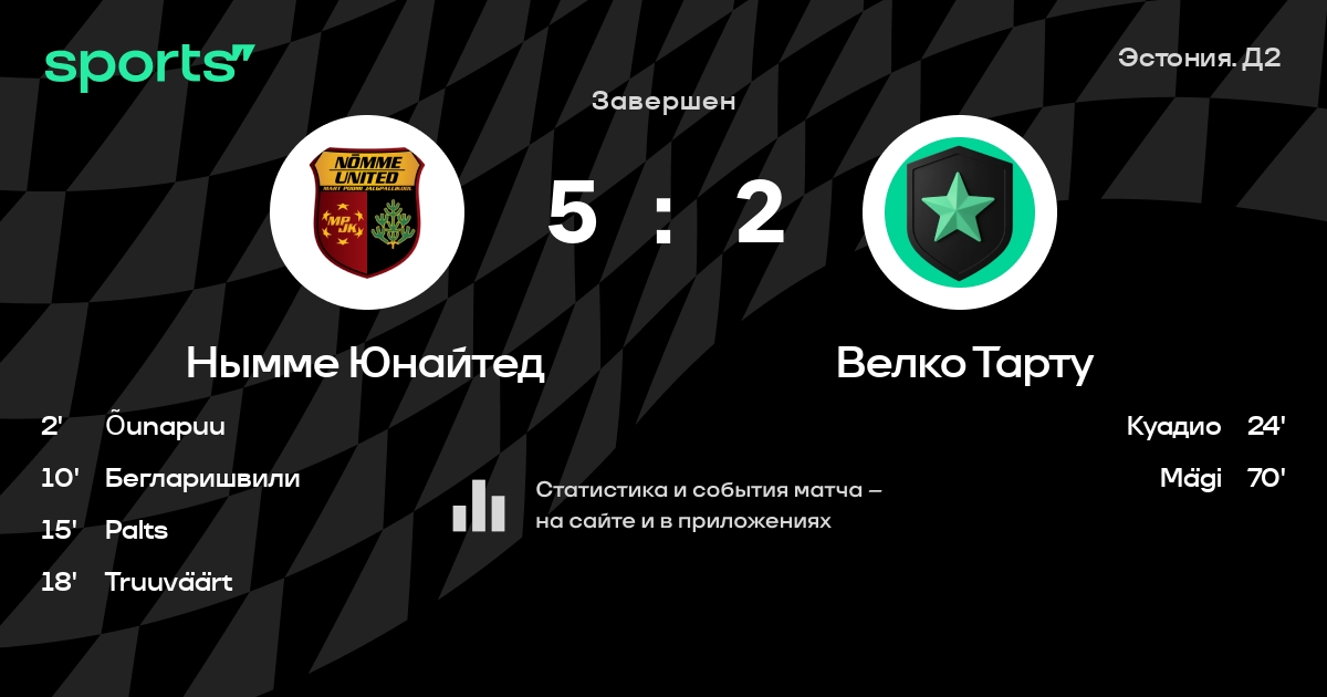Agarmaa - Тенисте, Richard Reesar, Paul, Saareleht - Viira, Vool - Куадио, Marko Mägi, Samidou Bawa, Mark William MugraЗапасные: Bachmann, Salu, Соколов, Penu, Ernits, Petmanson, Мыттус