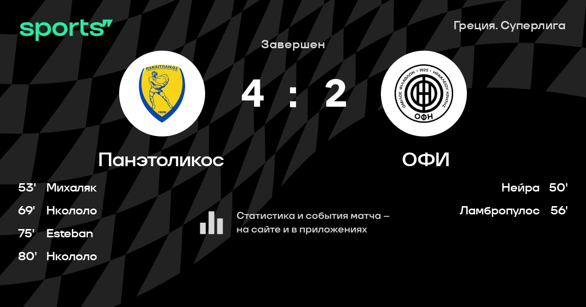 Панэтоликос – ОФИ: ОФИ забивает в 10 из 12 последних матчей против этого соперника