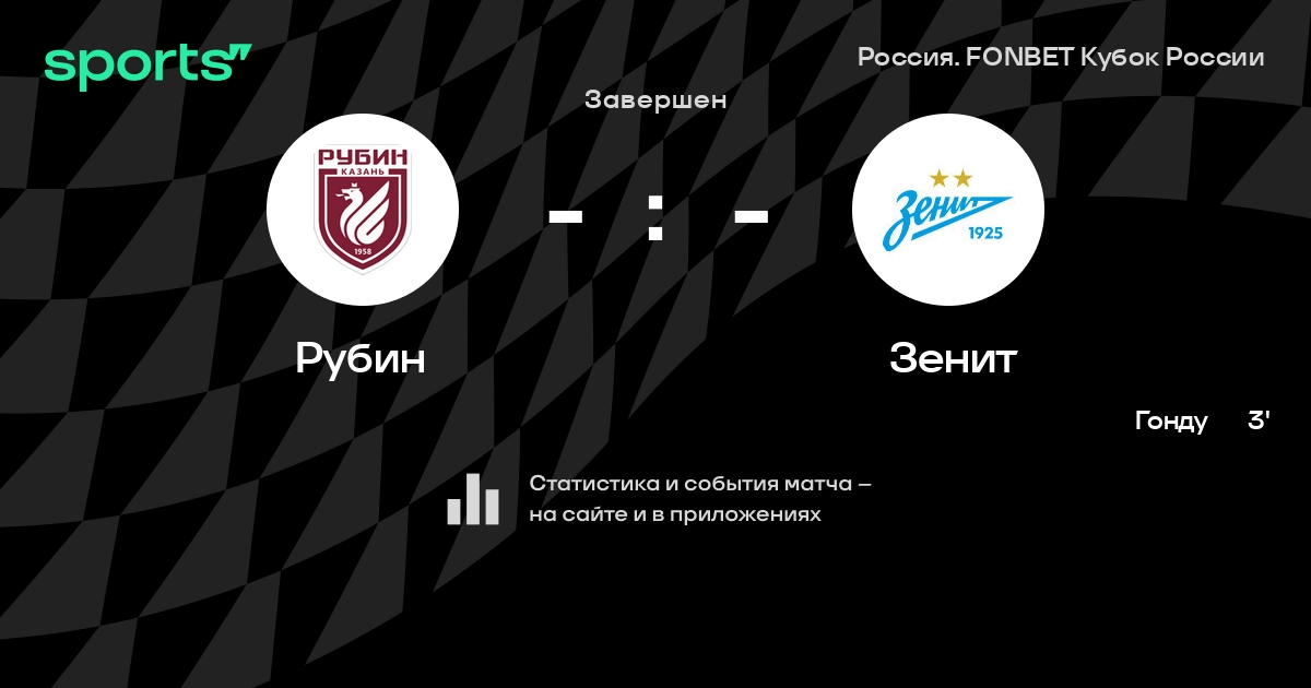 Рубин – Зенит: Зенит забивает в 6 последних матчах против этого соперника