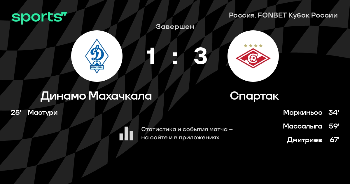 Динамо Махачкала – Спартак: Спартак забивает в 5 последних матчах против этого соперника