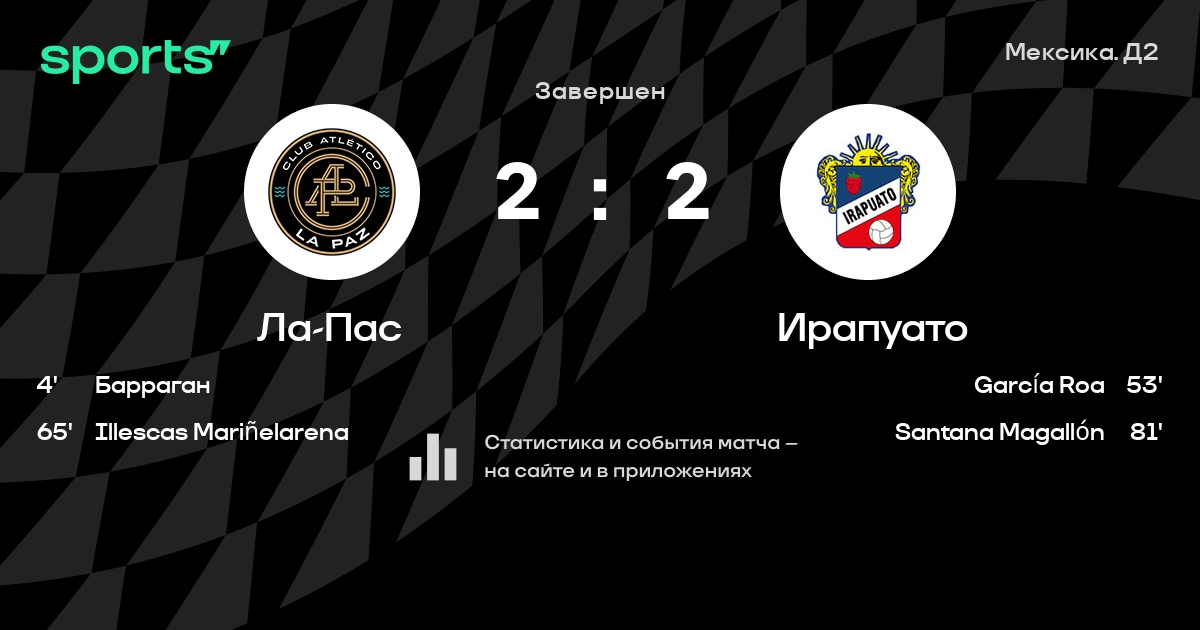 Результат прошлой игры в турнире «Первая лига»: Хайба Брава – Ла-Пас 3:2. Лучший бомбардир команды – Мартин Барраган: он забил 6 в 8 матчах. Ла-Пас не может выиграть в 4 последних матчах в рамках турнира «Первая лига». В 10 последних матчах в турнире «Первая лига» Ла-Пас обязательно забивает. Ла-Пас пропускает в 4 последних матчах в турнире «Первая лига». В последних 5 играх Ла-Пас забивает 11 голов. В последних 5 играх Ла-Пас пропускает 11 голов.