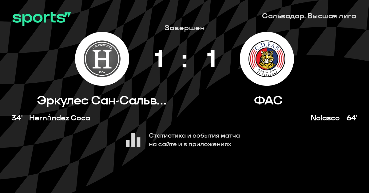 Результат прошлой игры в турнире «Высшая лига»: ФАС – Исидро Метапан 1:0. В последних 5 играх ФАС забивает 4 голов. В последних 5 играх ФАС пропускает 5 голов.