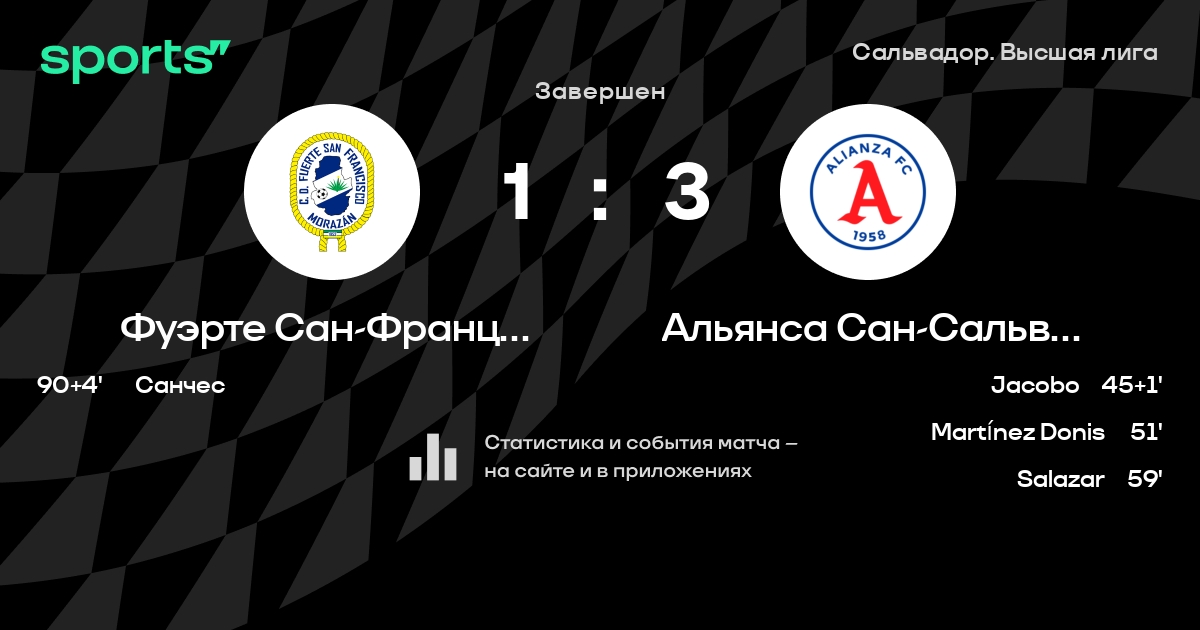 Результат прошлой игры в турнире «Высшая лига»: Исидро Метапан – Фуэрте Сан-Франциско 1:2. Лучший бомбардир команды – D. Cetré: он забил 7 в 18 матчах. Фуэрте Сан-Франциско не проигрывает в 6 последних матчах в рамках турнира «Высшая лига». В последних 5 играх Фуэрте Сан-Франциско забивает 6 голов. В последних 5 играх Фуэрте Сан-Франциско пропускает 5 голов.