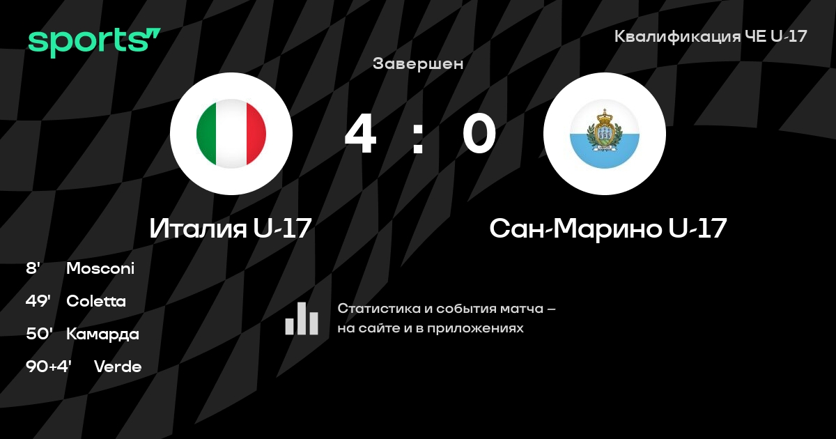 Трансляция Италия U-17 - Сан-Марино U-17