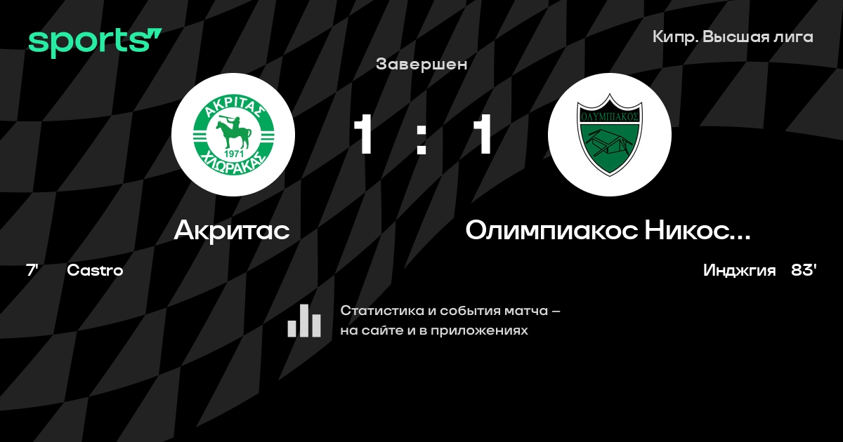 Результат прошлой игры в турнире «Лига 1»: Арис Лимасол – Акритас 3:1. После 9 туров Акритас набирает 8 очков и занимает 10 место в турнире. Лучший бомбардир команды – A. Athanasiou: он забил 4 в 10 матчах. Акритас не может выиграть в 4 последних матчах в рамках турнира «Лига 1». Акритас пропускает в 4 последних матчах в турнире «Лига 1». В последних 5 играх Акритас забивает 8 голов. В последних 5 играх Акритас пропускает 10 голов.