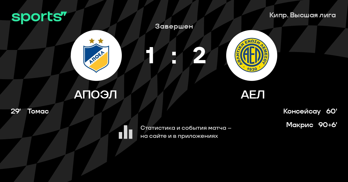 Результат прошлой игры в турнире «Лига 1»: Омония – АПОЭЛ 2:2. После 10 туров АПОЭЛ набирает 21 очков и занимает 5 место в турнире. Лучший бомбардир команды – Пьерос Сотириу: он забил 7 в 10 матчах. АПОЭЛ не проигрывает в 8 последних матчах в рамках турнира «Лига 1». В 8 последних матчах в турнире «Лига 1» АПОЭЛ обязательно забивает. АПОЭЛ пропускает в 4 последних матчах в турнире «Лига 1». В последних 5 играх АПОЭЛ забивает 14 голов. В последних 5 играх АПОЭЛ пропускает 6 голов.