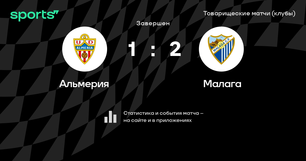 Альмерия – Малага: Малага не проигрывает в 5 из 6 последних матчей против этого соперника в турнире «Товарищеские матчи (клубы)»